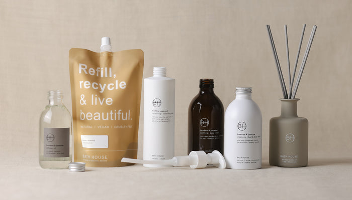 Our iconic bottles, jars and tins are just the start of your Bath House journey of sustainability– they are each designed to last and be refilled time and time again with our convenient, cost-effective refill options.